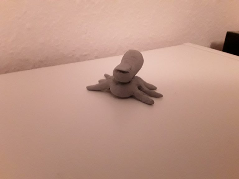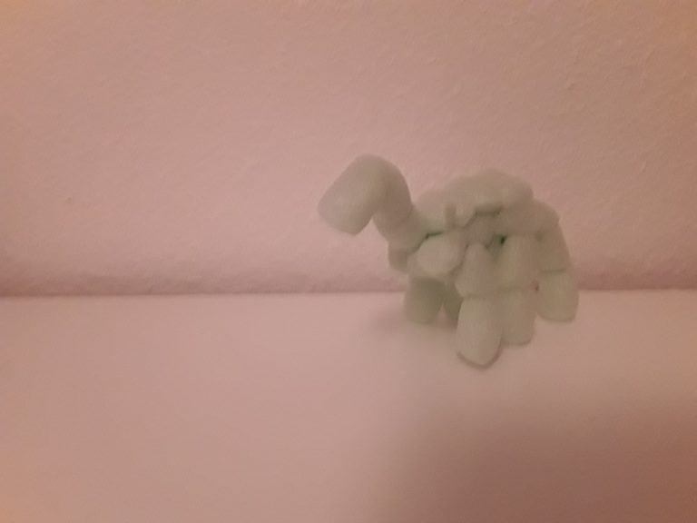 This is the result of some spontaneous creativity when I received a parcel a while ago. Corn starch pellets from a good basis for a fun dinosaur 🙂